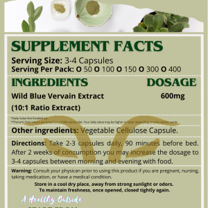 Blue Vervain Extract (Verbena hastata): A powerful herb traditionally used to soothe anxiety, improve sleep quality, and support the nervous system. Known for its anti-inflammatory, calming, and cognitive-enhancing properties, Blue Vervain is a natural solution for relaxation and overall wellness.
