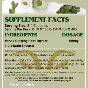 Experience the power of Panax Ginseng Extract Capsules—a natural, adaptogenic supplement designed to support your physical, mental, and emotional well-being. With its proven benefits for boosting energy, enhancing focus, improving stamina, and promoting immune health, Panax Ginseng is the perfect addition to your daily routine. Embrace the vitality, clarity, and balance you deserve, naturally. Boost your performance, reduce fatigue, and protect your body from stress with Panax Ginseng Extract—your key to optimal health and wellness.